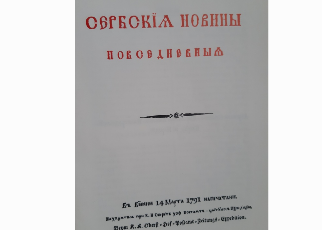 Прве новине на српском језику изашле су из штампе још далеке 1791. године, 14. марта у Бечу под називом “Сербскија повседневнија новини“, а после трогодишње борбе с аустријским властима. Тек 43 године касније појавиће се прве новине у Србији, тачније 5. јануара 1834-те у Крагујевцу под називом “Новине сербске”.